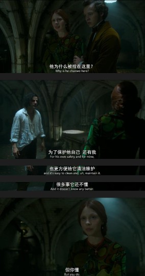但有控制,就有反控制的力量。在玛丽·雪莱的原著中,“造物者”被“造物”反噬,他们各自在孤独中走向死亡,前者有罪,后者虚无,幻灭感很强,能够感受到作者对当时人们掌握科技的乐观心态保持谨慎,对启蒙理性之于人的异化感到悲观。