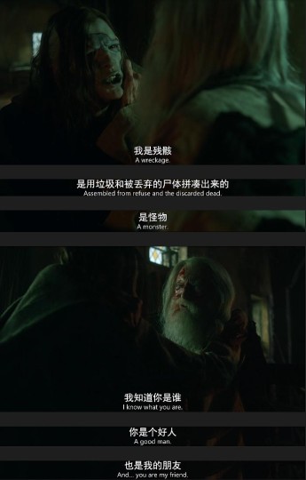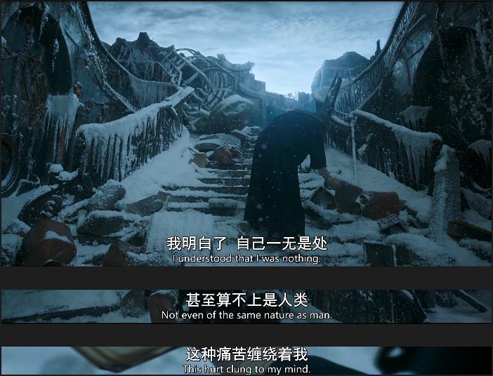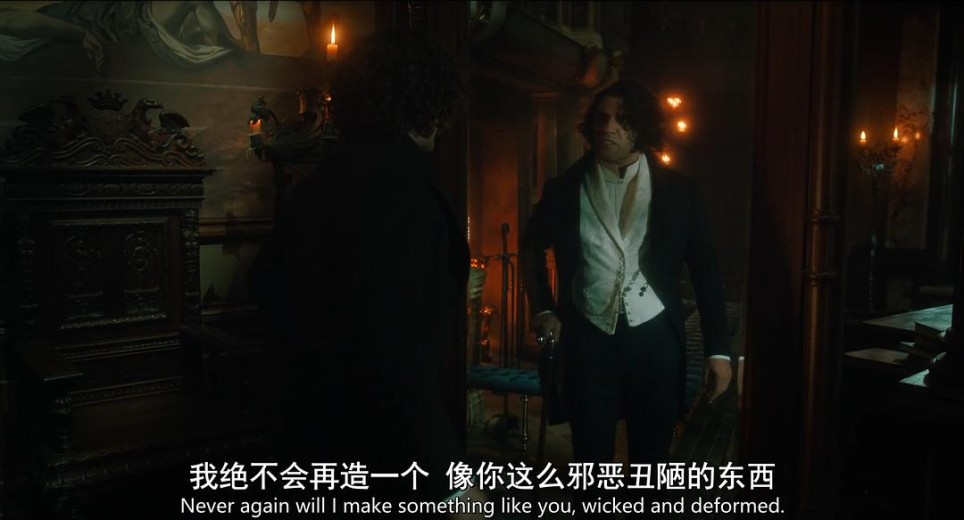 听到“怪物”在叫他,维克多回头去找他。这是一个同情心打底,被残忍侵蚀的复杂人物。