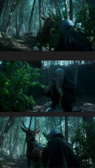 我也很喜欢“造物”在影片中被塑造的形象。他的身体来自于战场,满载悲伤的记忆,但这样的身体长出了纯粹的灵魂,却又注定因为外表而受到排斥和攻击。他无法避免疼痛和流血,然而他愿意、也被祝福活下去,在这个冷酷的世界里,化身一个不死的符号,带着人性中的纯真与良善走向永恒。