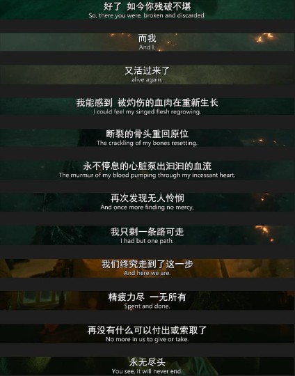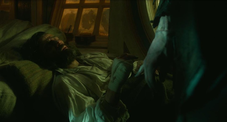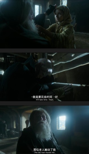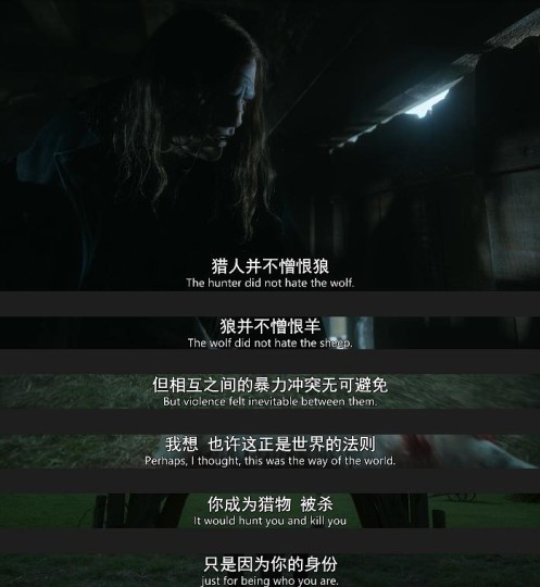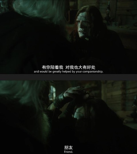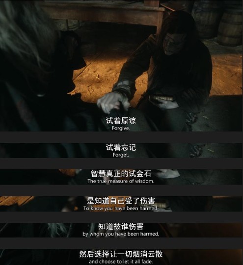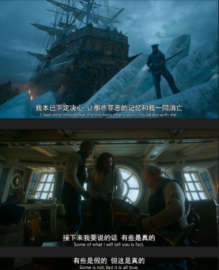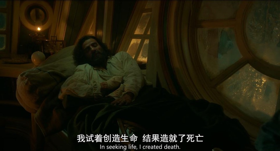 这里维克多的台词提示了至少两点关于他“态度”的信息,一是他已经意识到自己是有错的(“my evils”);二是他此刻依然是骄傲和固执的,所以才会决定带着记忆死去,只不过,面对救下自己的船员和船长,他被善意触动,决心才松动,讲述是为了让他们避免受到伤害。