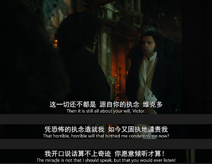 也就是说,维克多对“造物”的理解只有在后者发出自己的声音后,才有可能达成。一个只看得到自己的人,是无法理解他者,也无法真正理解自己和世界的